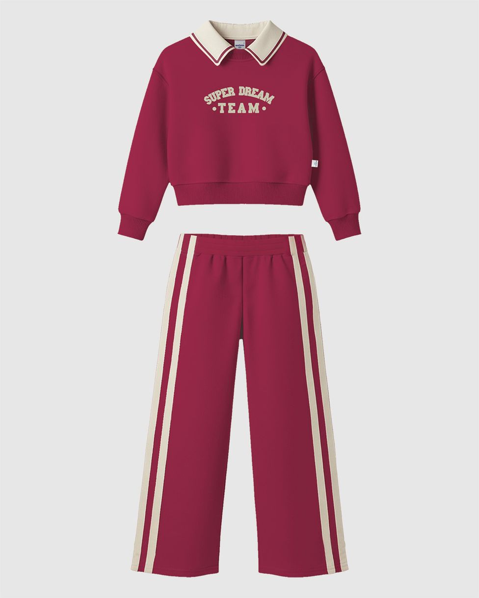 O Conjunto Infantil Menina Malwee Kids traz a tendência preppy para o Outono Inverno 2026. Com o tema "Super Dream Team", este conjunto une o conforto do blusão com gola polo ao estilo da calça wide leg com listras, garantindo um visual esportivo e sofisticado para as meninas brilharem.