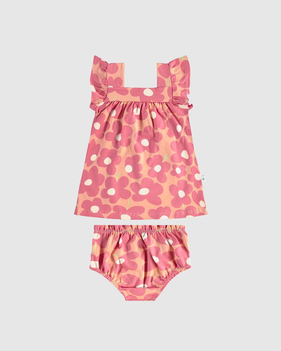 Conjunto Infantil Menina Vestido Evasê Floral + Calcinha Em Algodão Malwee Kids