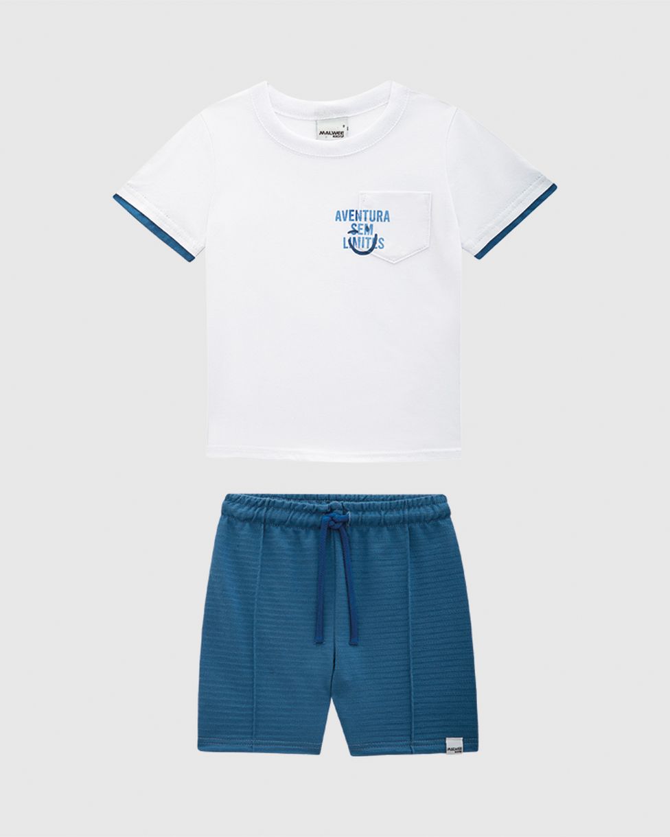 Conjunto Infantil Menino Bermuda Em Moletinho Texturizado Malwee Kids