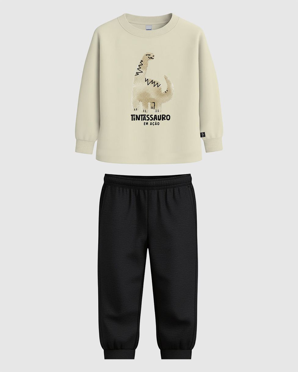 InfantilConjuntosConjuntos LongosConjunto Infantil Menino Blusa Tintassauro Em Ação E Calça Malwee Kids
