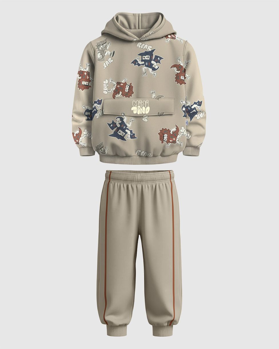 O Conjunto Infantil Menino Mini Dino é perfeito para pequenas grandes aventuras! Feito em moletinho, o blusão possui capuz, estampa rotativa de dinossauros e um divertido aplique interativo. A calça jogger completa o look com conforto e estilo para o Outono Inverno.