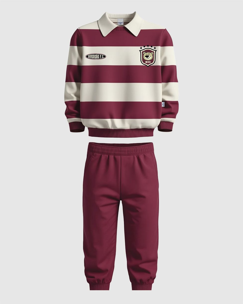 O Conjunto Infantil Menino Malwee Kids traz um visual clássico e esportivo para as crianças. O blusão com gola polo retilínea e estampa listrada, combinado à calça confortável, é confeccionado em moletom flanelado. É a escolha ideal para garantir estilo e proteção térmica durante todas as aventuras do inverno.