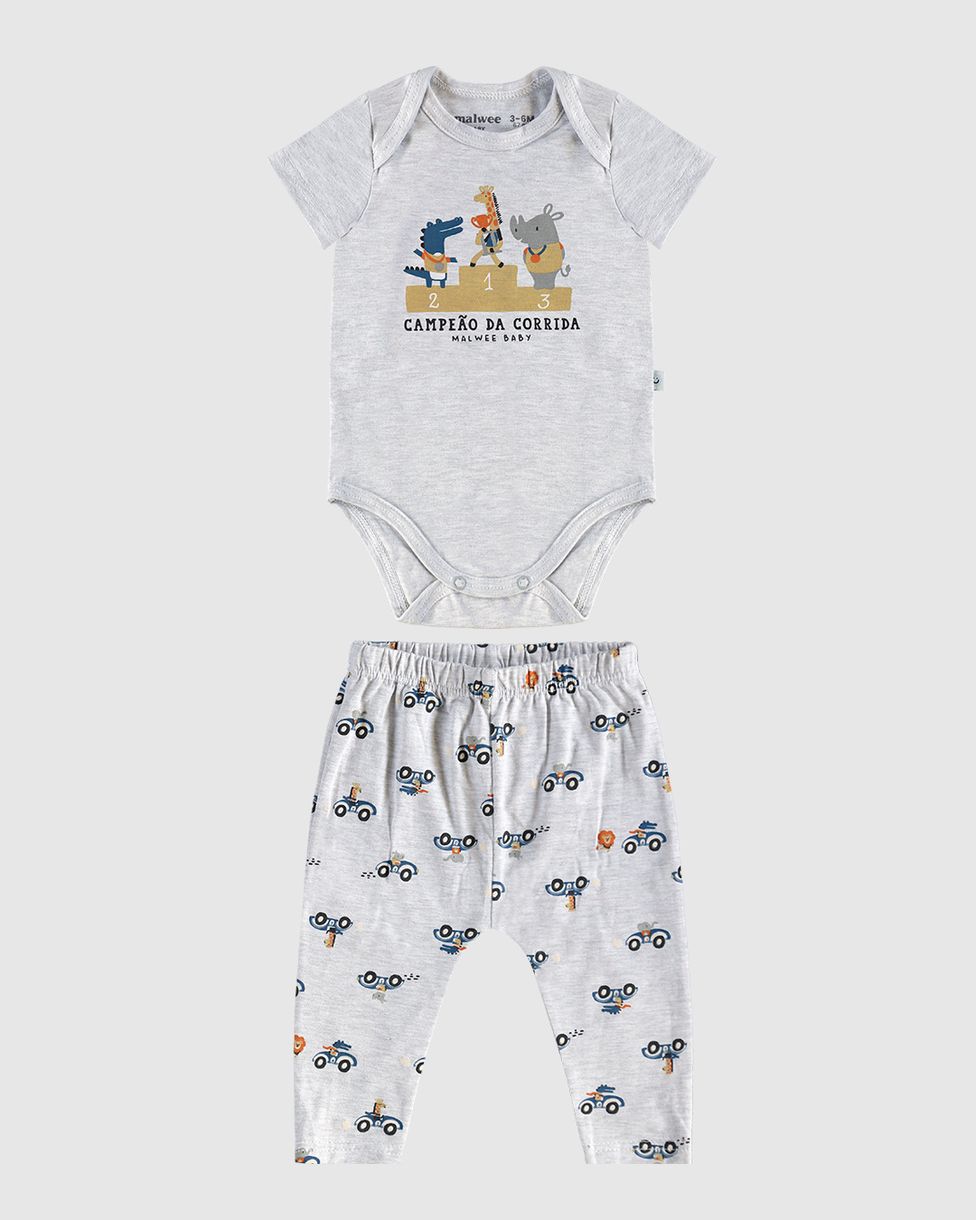 Conjunto Infantil Menino Body E Calça Estampada Em Algodão Malwee Kids