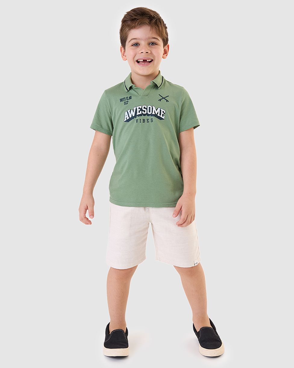 Conjunto Infantil Menino Camisa Polo Awesome Vibes Em Algodão Malwee Kids Verde - 10