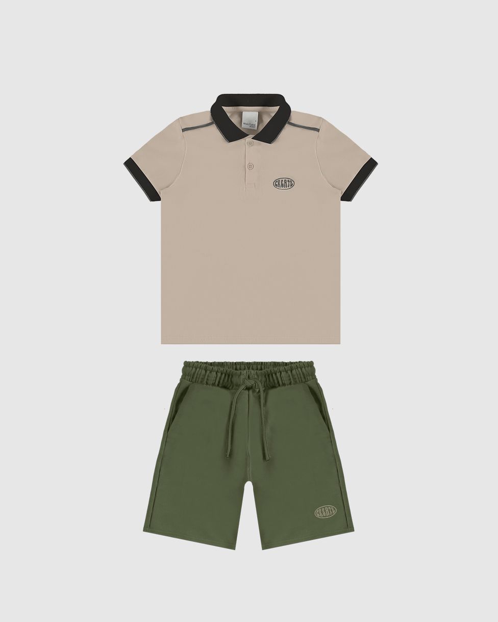 Conjunto Infantil Menino Camisa Polo + Bermuda Em Moletom Malwee Kids