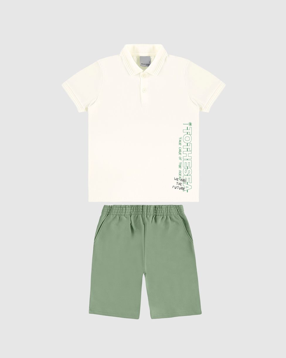 Conjunto Infantil Menino Camisa Polo E Bermuda Com Bolso Faca Malwee Kids