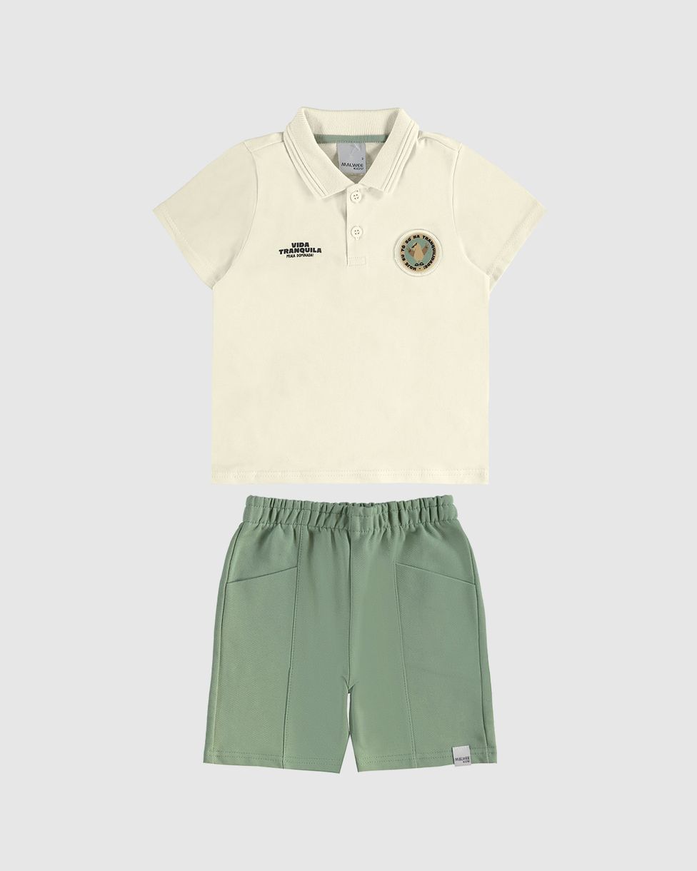 Estilo impecável para o seu garoto com o conjunto da Malwee Kids. A clássica camisa polo, feita em macio algodão, ganha vida com uma divertida estampa com aplique que ele vai amar. Conforto garantido para todas as suas aventuras, do parque ao almoço em família, com a qualidade superior Malwee Kids.