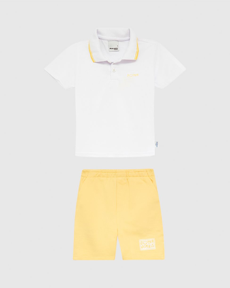 Conjunto Infantil Menino Camisa Polo Estampa Efeito HD E Bermuda Malwee Kids