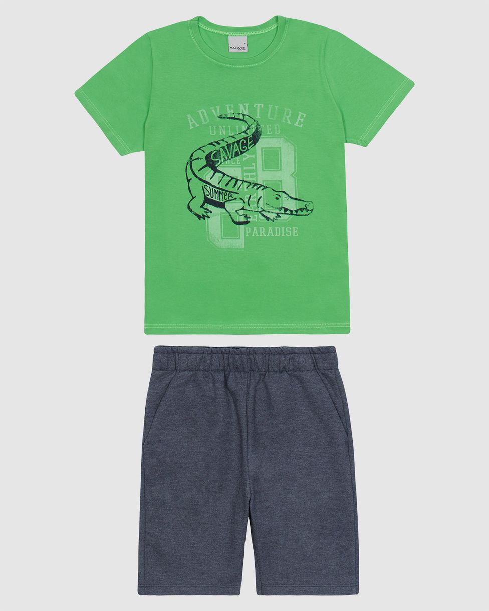Conjunto Infantil Menino Camiseta E Bermuda Em Mix Tecidos Malwee Kids