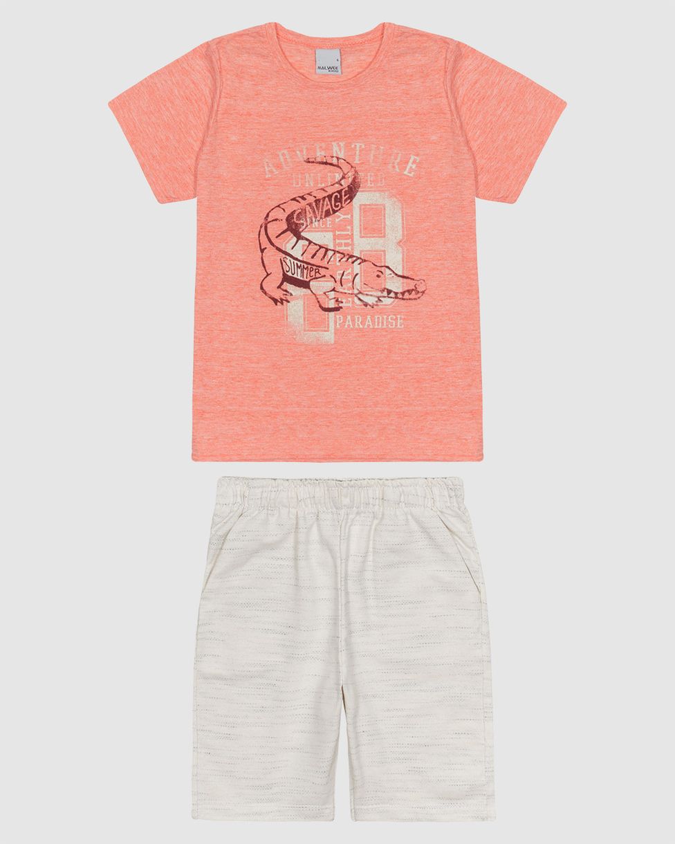 Conjunto Infantil Menino Camiseta E Bermuda Em Mix Tecidos Malwee Kids
