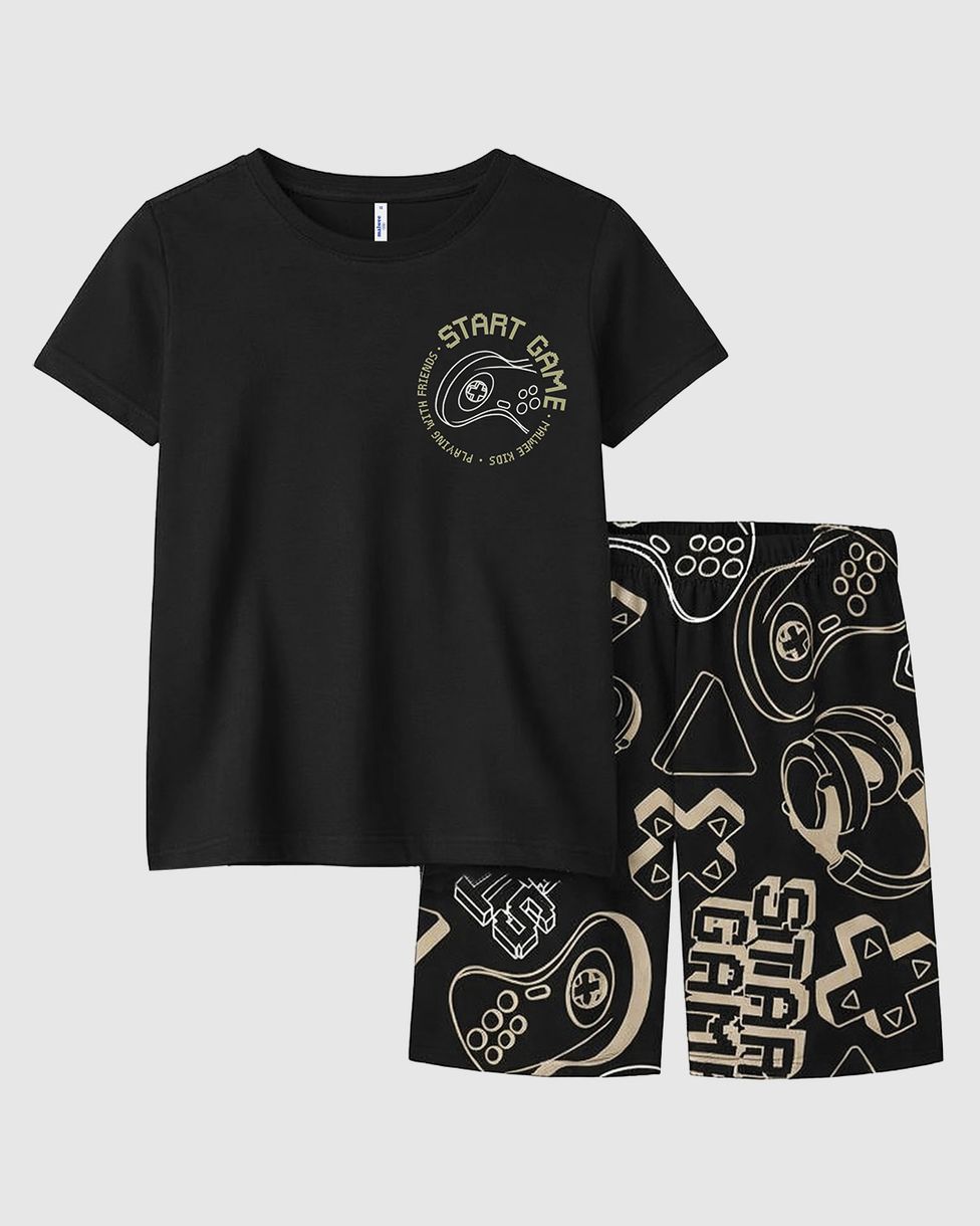 • Conjunto de pijama composto por camiseta de manga curta e shorts estampado