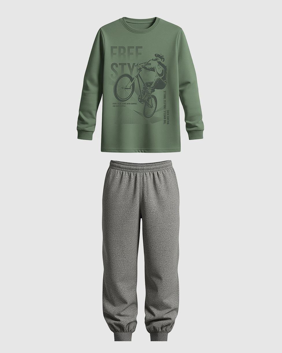 Prepare o guarda-roupa para as aventuras de inverno! O Conjunto Infantil Menino Malwee Kids une o conforto da camiseta em meia malha ao estilo da calça em moletinho. Com estampas urbanas de skate e bike, é a escolha perfeita para garantir liberdade de movimento e um visual moderno em qualquer ocasião.