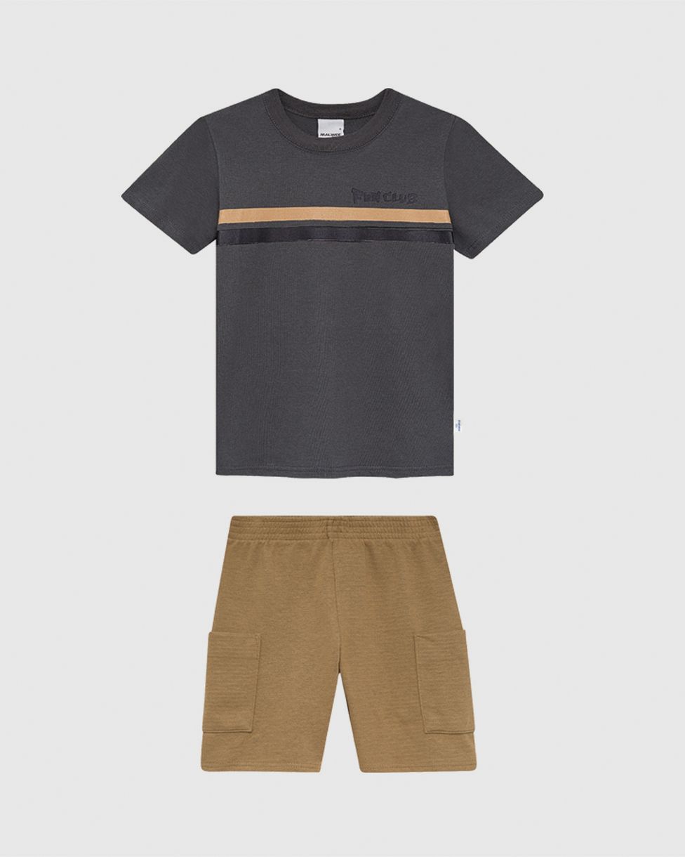 Conjunto Infantil Menino Camiseta Fun Club Em Algodão Malwee Kids Cinza - 12