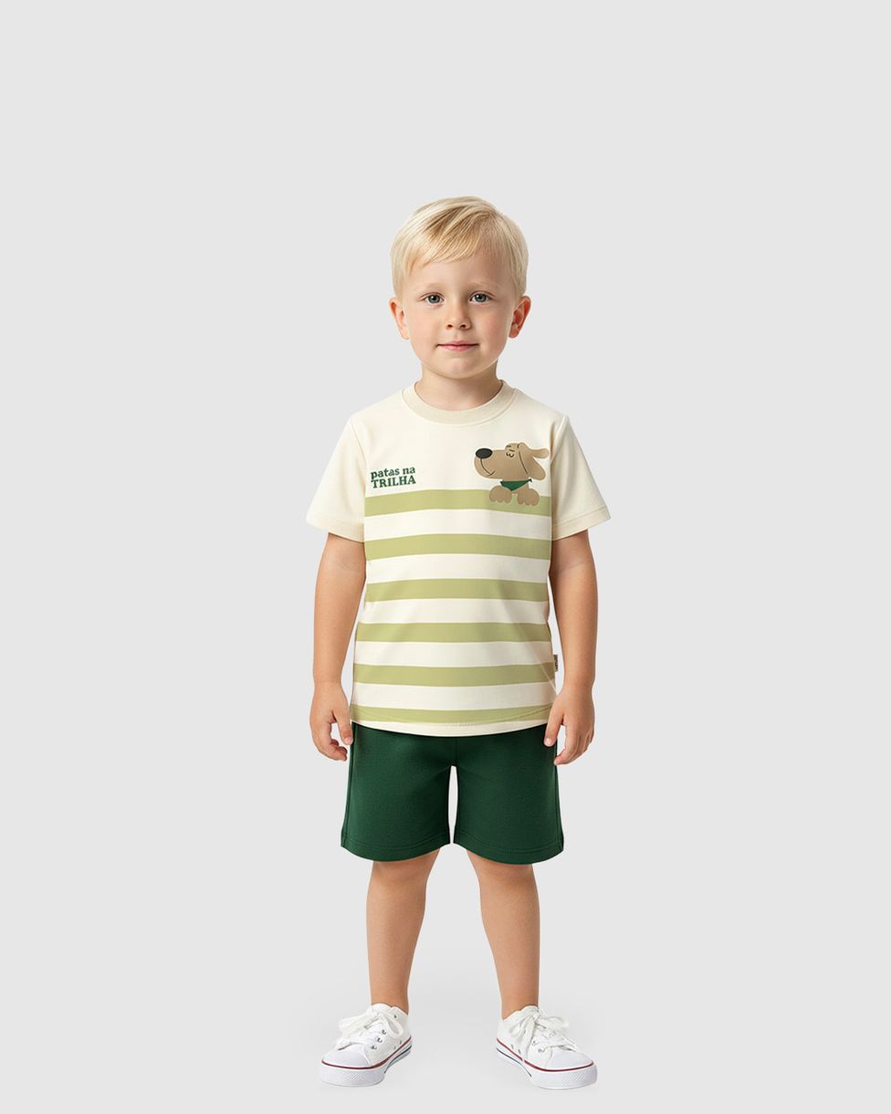 Conjunto Infantil Menino Camiseta Listrada Patas Na Trilha Malwee Kids