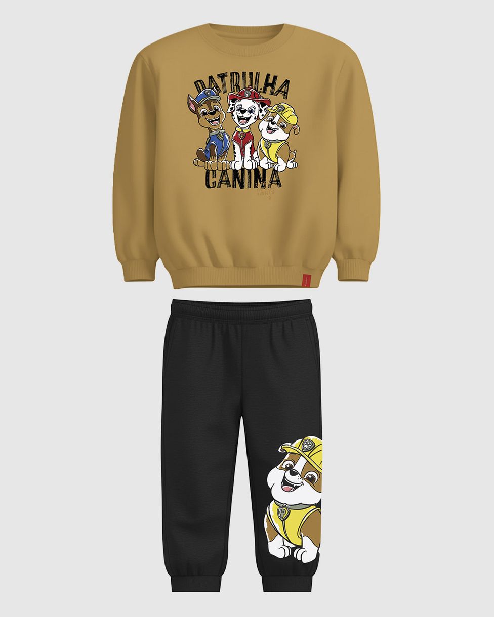 O Conjunto Infantil Menino Malwee Kids traz os heróis da Patrulha Canina® para o inverno. Confeccionado em moletom flanelado, garante máximo conforto térmico e toque macio. Com uma estampa interativa na calça, é a escolha perfeita para unir diversão e proteção nos dias frios.