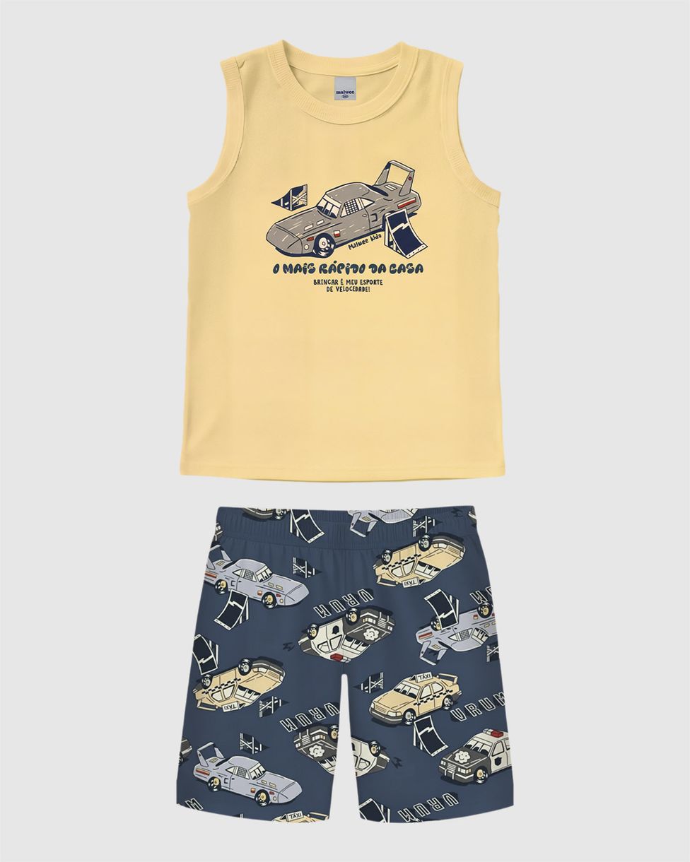 O Conjunto Infantil Menino O Mais Rápido Da Casa Em Algodão Malwee Kids é perfeito para as crianças cheias de energia! Leve, divertido e confortável, une regata estilosa e bermuda estampada para aventuras cheias de movimento e alegria.