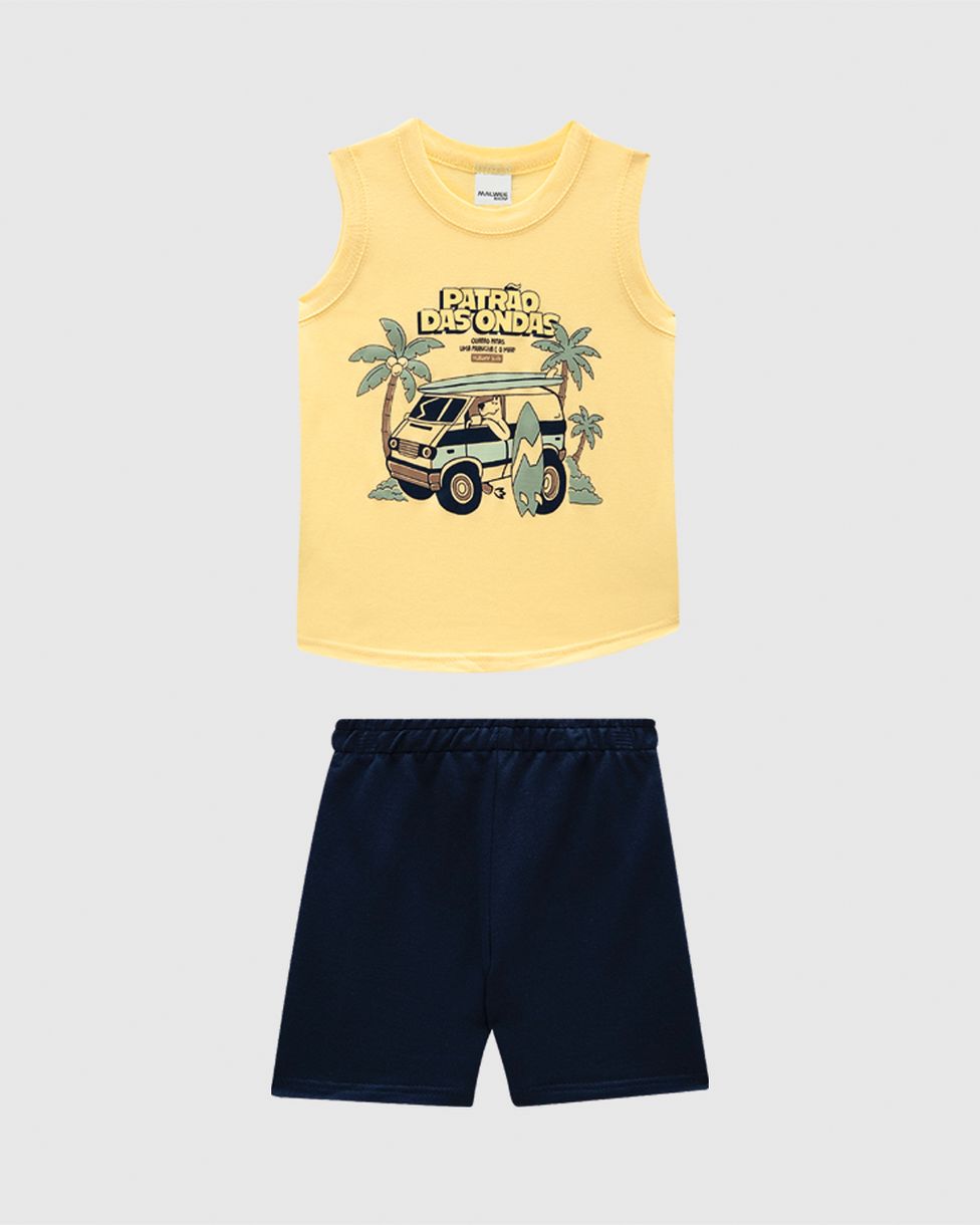 InfantilConjuntosConjuntos CurtosConjunto Infantil Menino Regata Estampa Divertida Em Algodão Malwee Kids