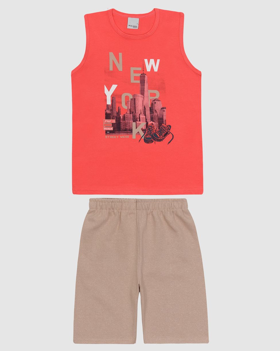 Conjunto Infantil Menino Regata Estampa Frontal Em Algodão Malwee Kids