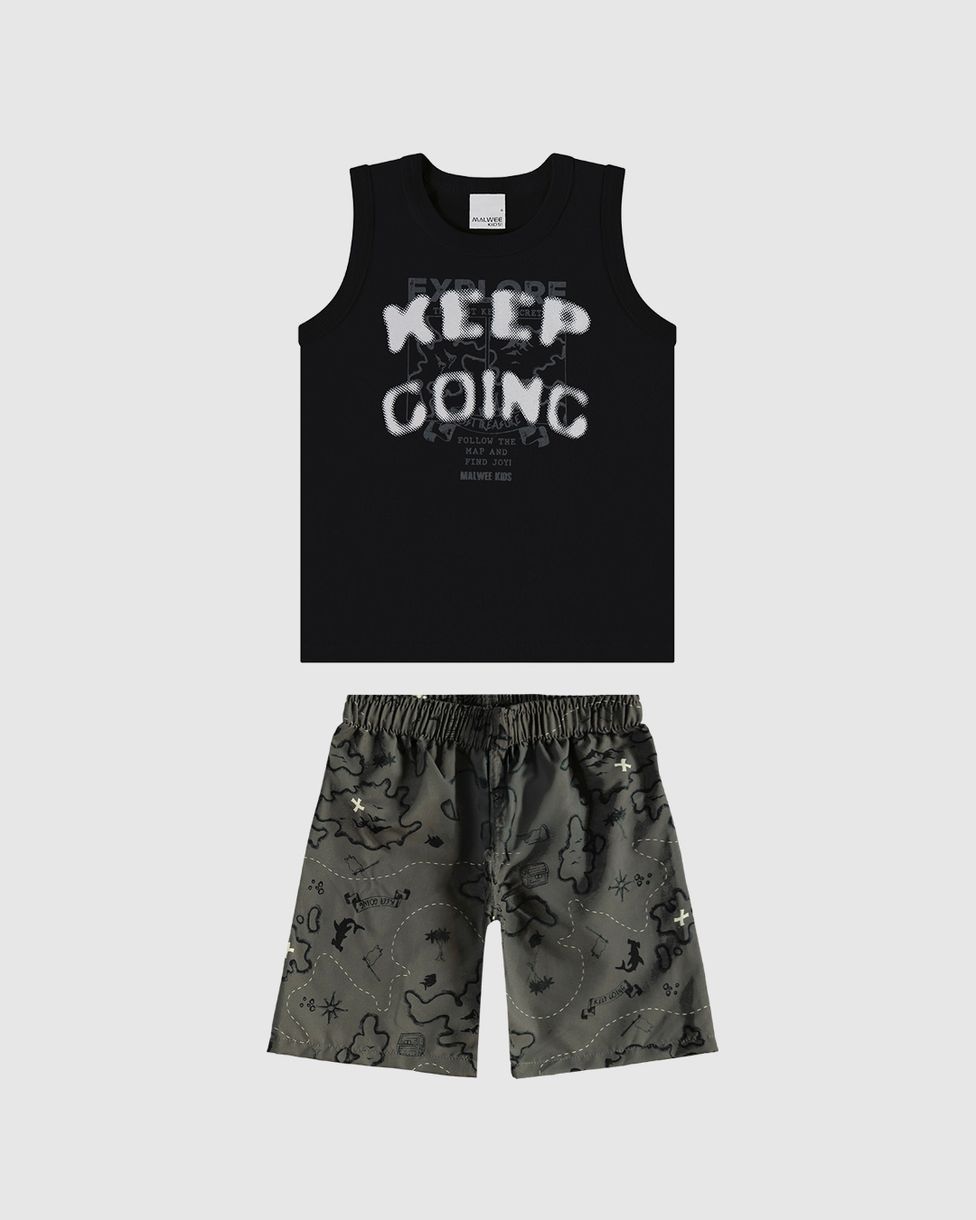 Conjunto Infantil Menino Regata Keep Going em Algodão Malwee Kids: ideal para os garotos cheios de energia! Confeccionado em algodão, combina uma regata com estampa motivacional e um short confortável em microfibra. Perfeito para dias ativos de brincadeiras, passeios ou momentos descontraídos.