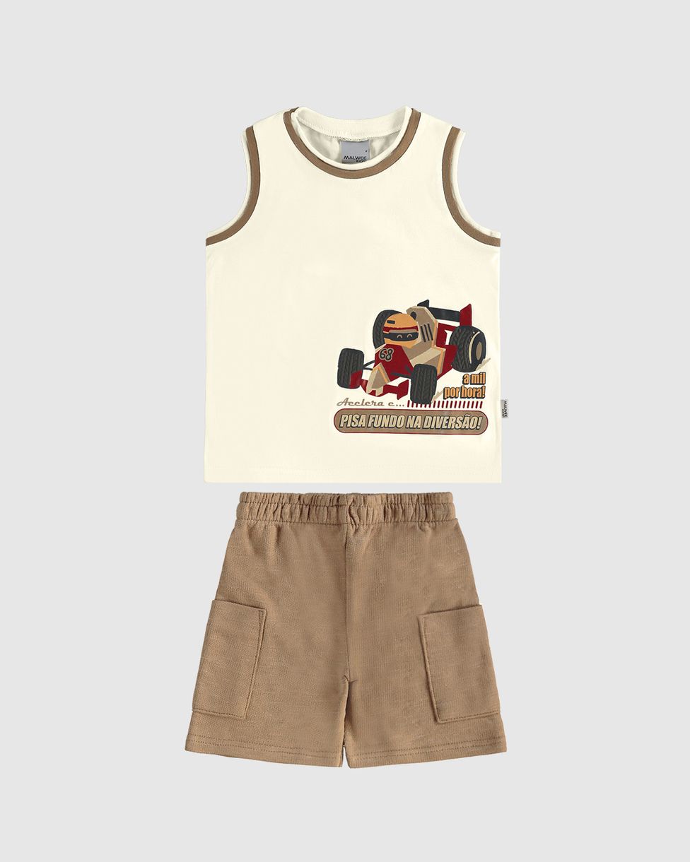Conjunto Infantil Menino Regata Pisa Fundo Na Diversão! Em Algodão Malwee Kids