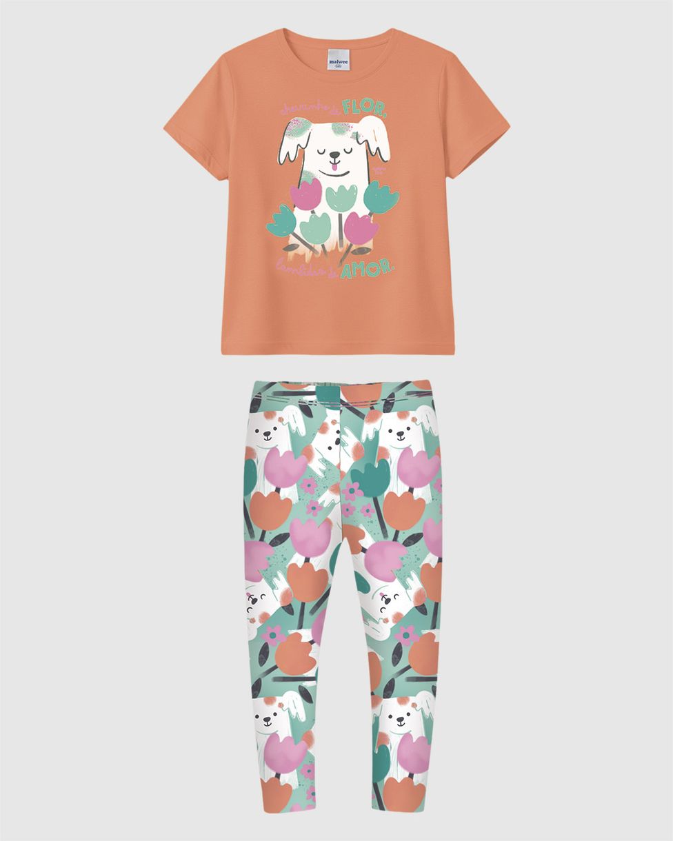 Conjunto Longo Infantil Menina Estampa Cachorrinho Em Algodão Malwee Kids