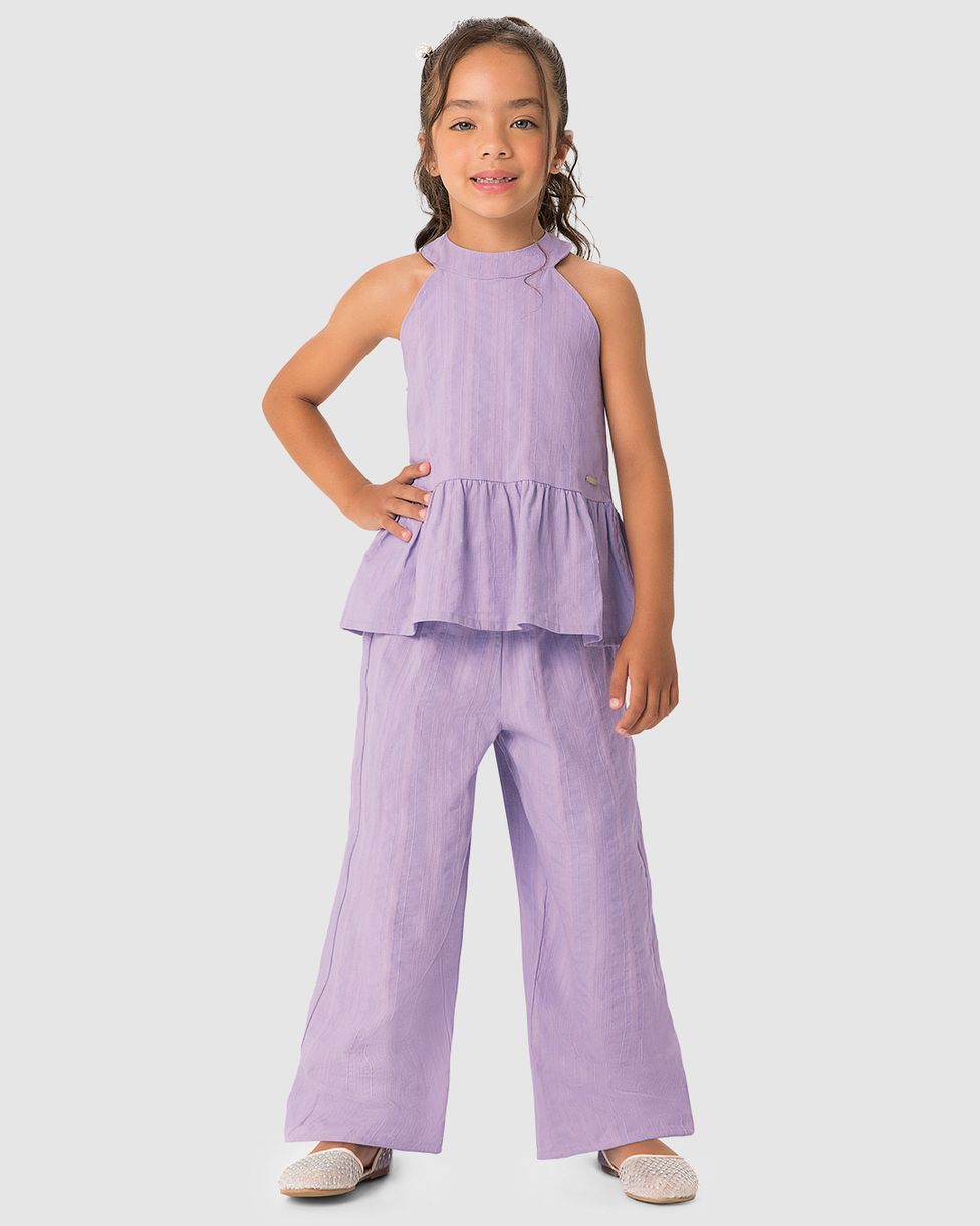 Conjunto Longo Menina Regata E Calça Em Viscolinho Texturizado - Carinhoso