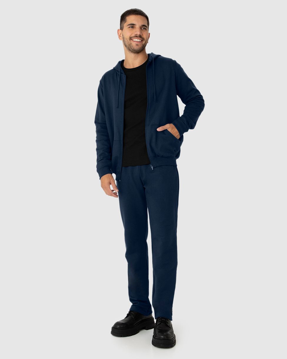 Conjunto Masculino Jaqueta Com Capuz Em Moletom Stretch Flanelado