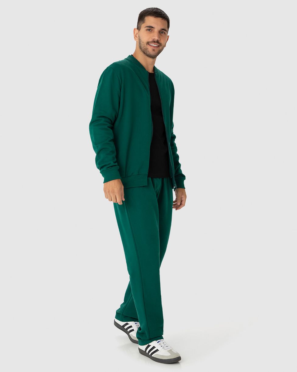 Conjunto Masculino Jaqueta Tradicional Em Moletom Stretch Flanelado