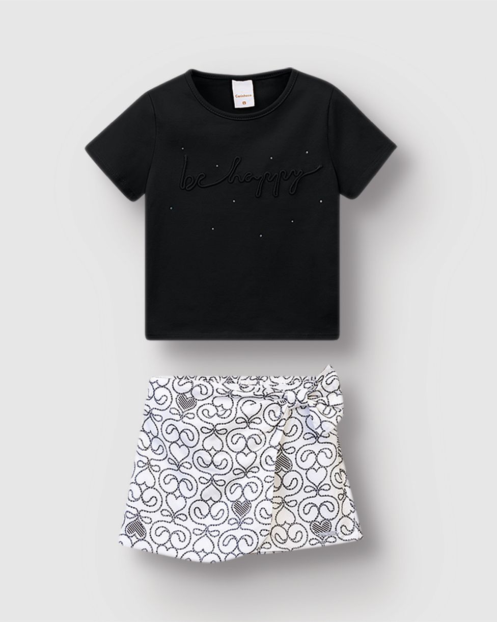 Conjunto Menina Blusa Be Happy E Shorts Saia Estampado - Carinhoso