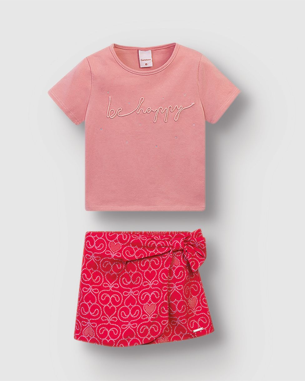 Conjunto Menina Blusa Be Happy E Shorts Saia Estampado - Carinhoso