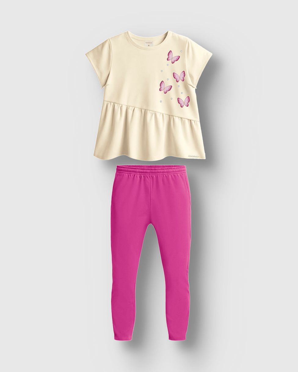 O Conjunto Menina Blusa Bordado Com Strass E Calça Legging - Carinhoso une conforto e estilo para o dia a dia das garotas. A blusa, em tecido cotton light, possui delicado bordado com strass que adiciona brilho sutil, enquanto a calça legging oferece liberdade de movimento e ajuste perfeito.