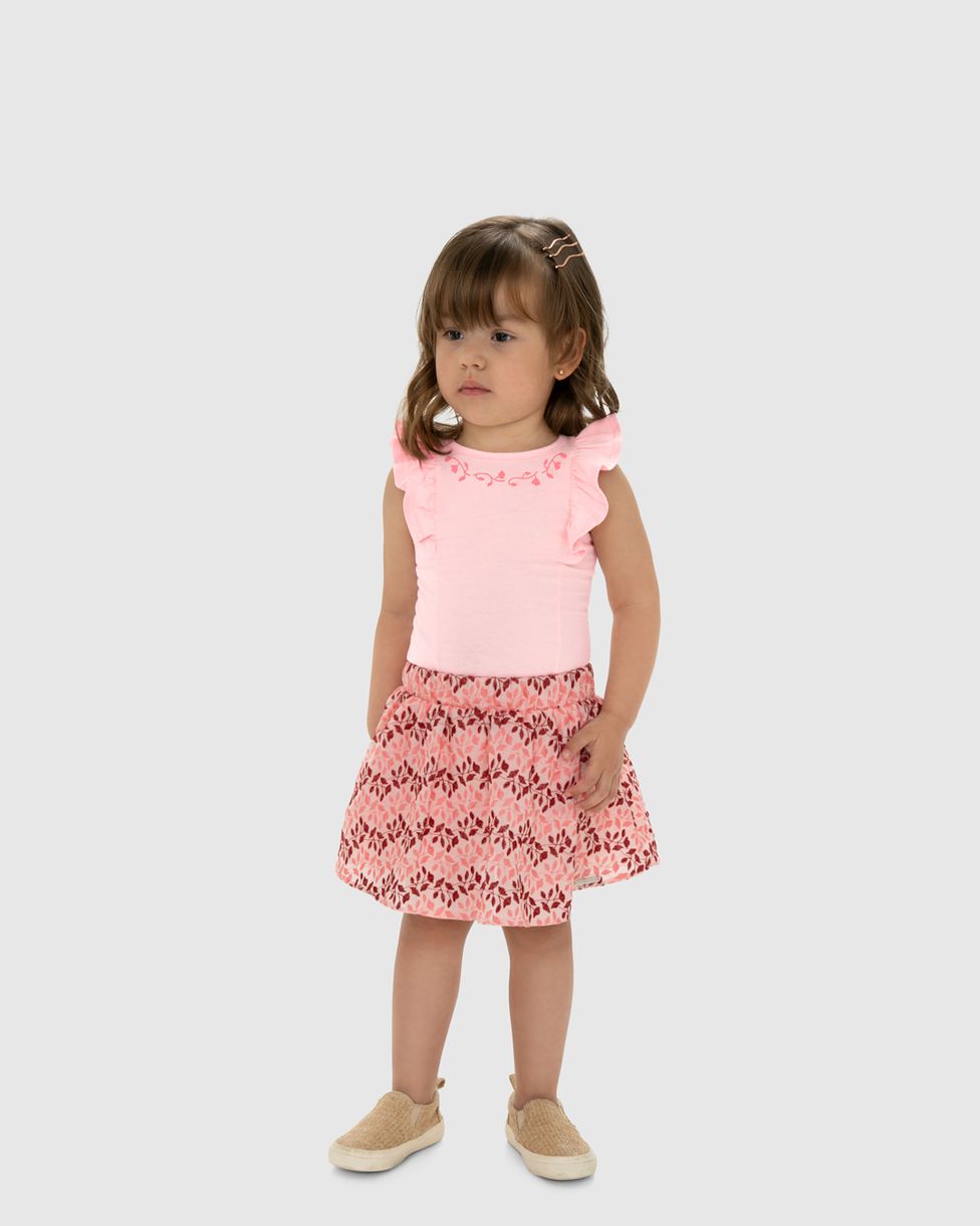 Conjunto Menina Blusa Com Saia Em Tecido Bordado - Carinhoso