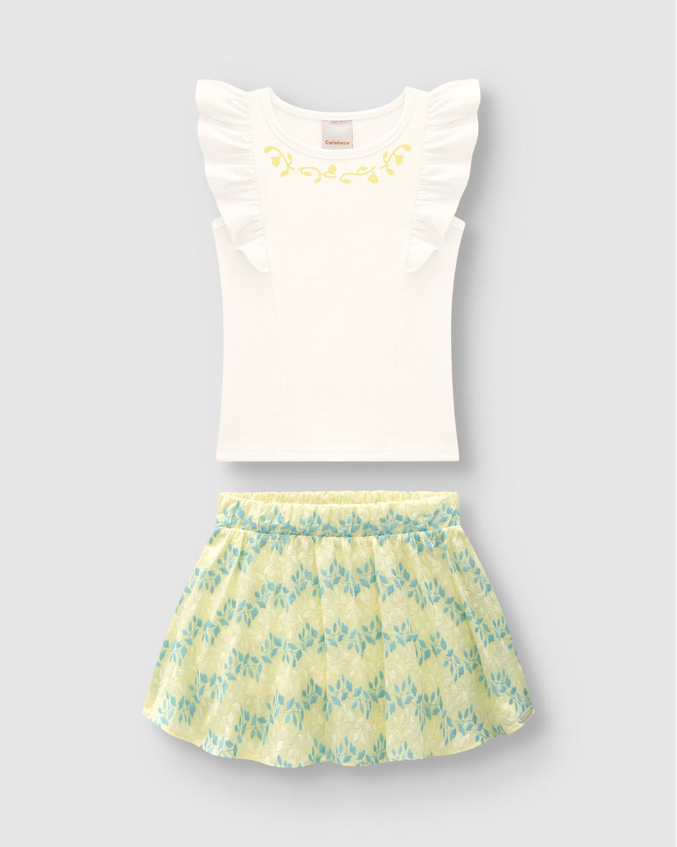 Conjunto Menina Blusa Com Saia Em Tecido Bordado - Carinhoso