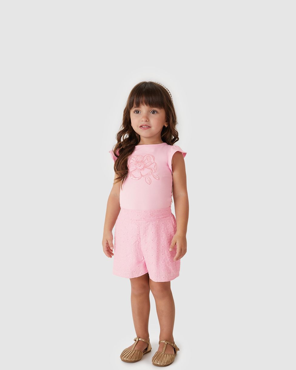 Conjunto Menina Blusa E Shorts Em Laise Algodão - Carinhoso Rosa - 1