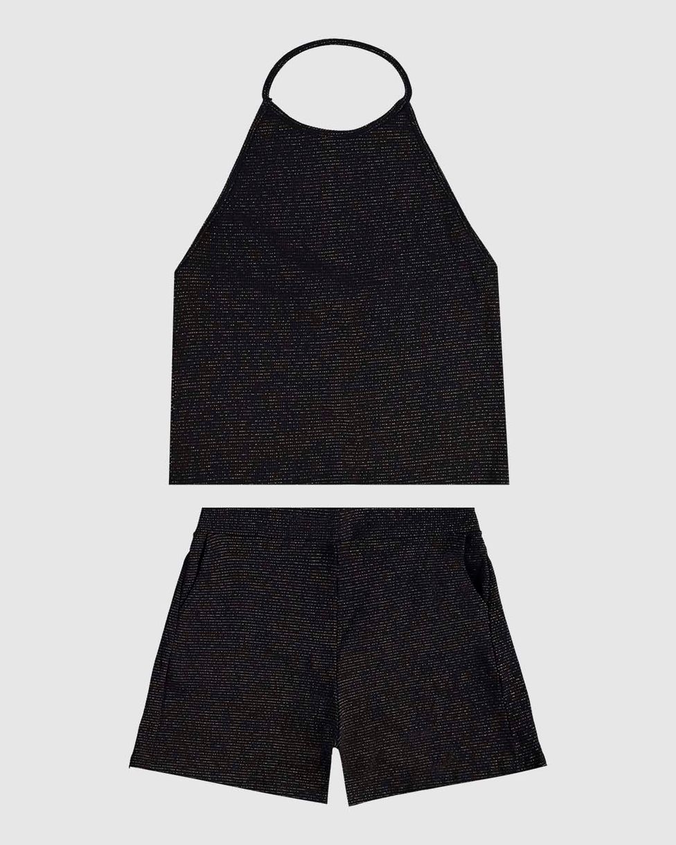 Conjunto Menina Blusa E Shorts Em Malha Canelada Lurex Malwee Kids