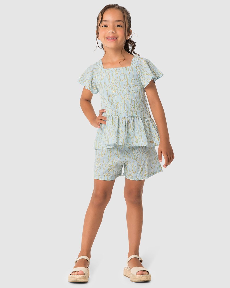 Conjunto Menina Blusa E Shorts Estampa Metalizada Em Viscose - Carinhoso