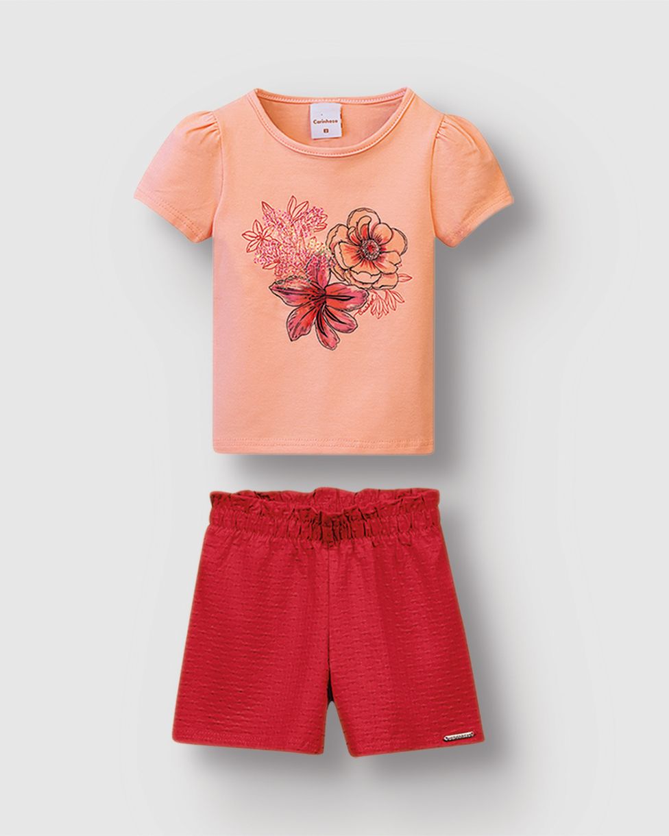Este conjunto infantil da Carinhoso é a escolha ideal para um look cheio de frescor e alegria. A blusa, em cotton light, se destaca pela delicada estampa de flores com bordado de lantejoula, que adicionam um toque de brilho ao visual. O shorts, feito em malha texturizada, tem cós com elástico e modelagem que garantem o máximo conforto para os dias mais quentes.
