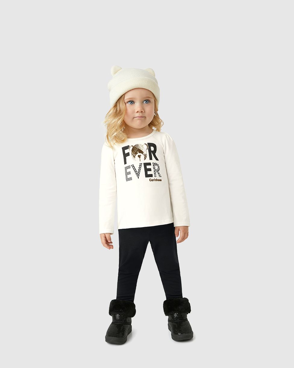 Conjunto Menina Blusa Estampa Forever E Legging Em Algodão - Carinhoso