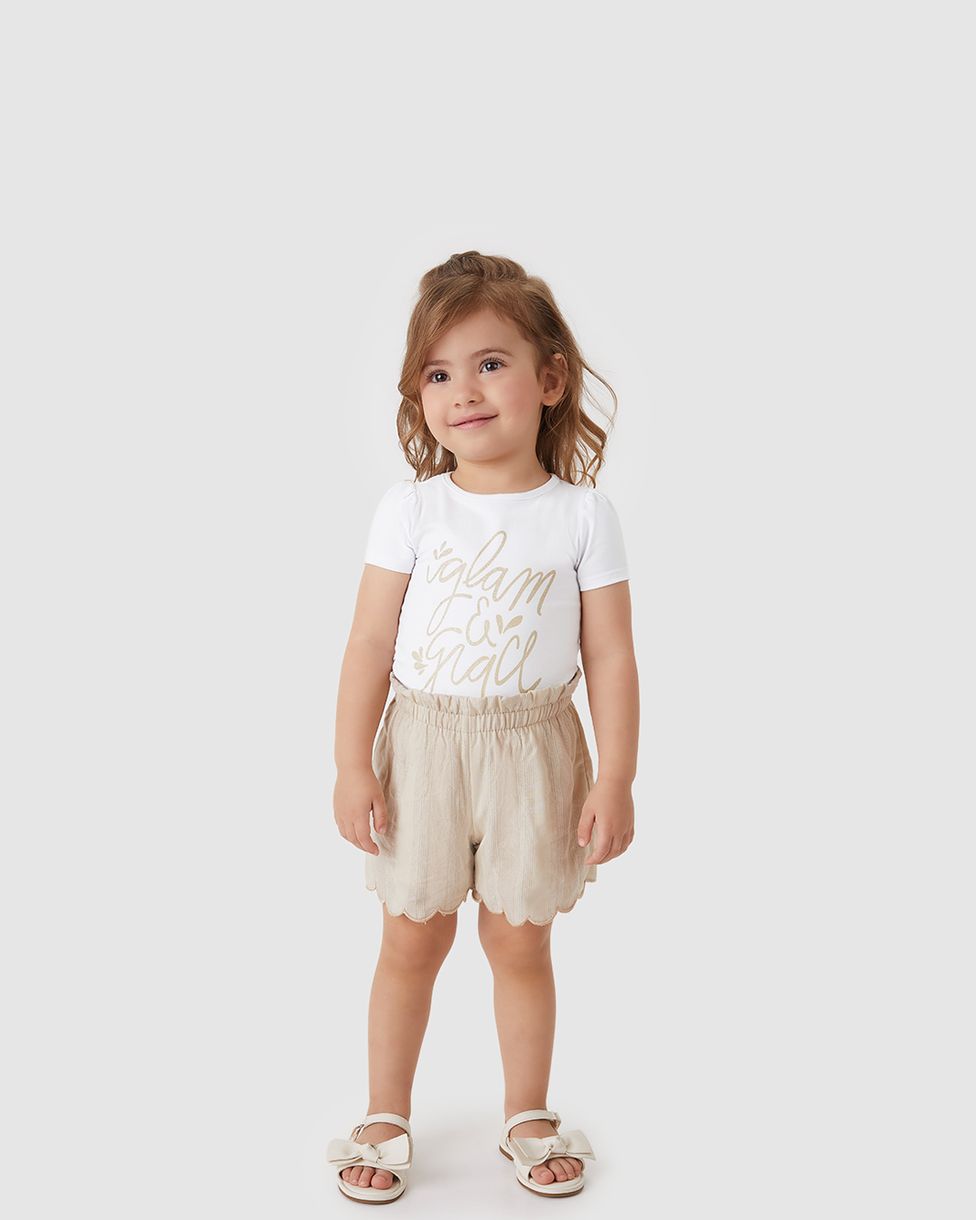 Conjunto Menina Blusa Estampa Glitter Glam & Grace Em Algodão - Carinhoso Branco - 1