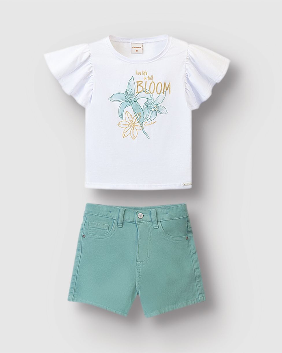 Conjunto Menina Blusa Live Life In Full Bloom Em Algodão - Carinhoso