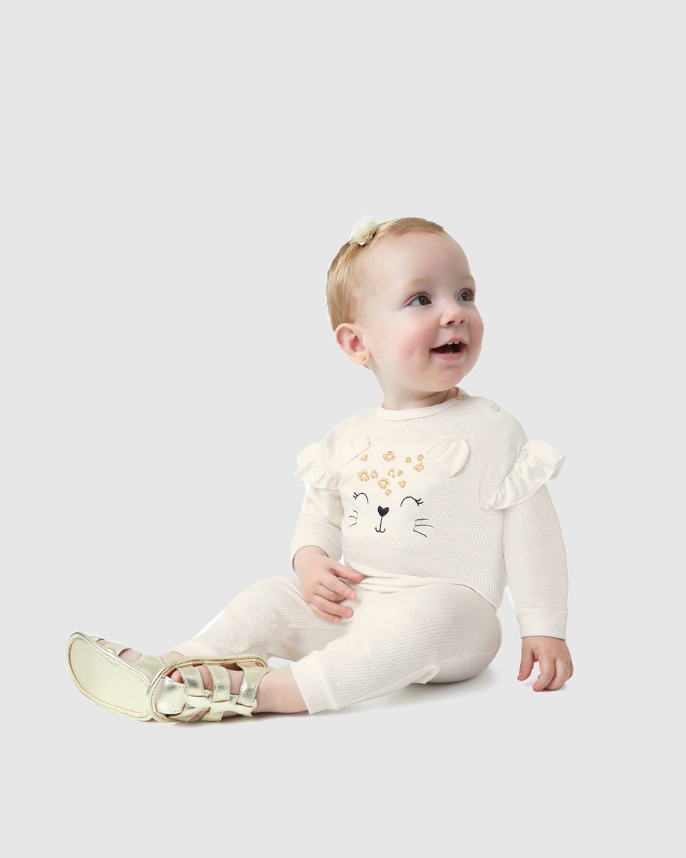 O Conjunto Menina Carinhoso une conforto e fofura com um visual delicado para a sua bebê. A blusa manga longa em malha texturizada possui babados nos ombros encantadores, garantindo charme e liberdade de movimentos. Uma escolha perfeita para o dia a dia ou ocasiões especiais com estilo e aconchego.