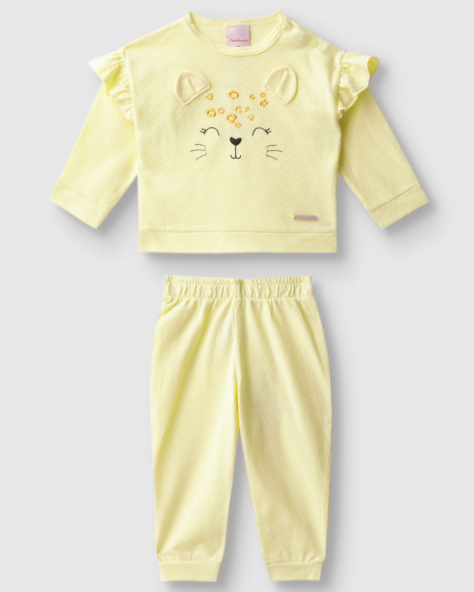 O Conjunto Menina Carinhoso une conforto e fofura com um visual delicado para a sua bebê. A blusa manga longa em malha texturizada possui babados nos ombros encantadores, garantindo charme e liberdade de movimentos. Uma escolha perfeita para o dia a dia ou ocasiões especiais com estilo e aconchego.