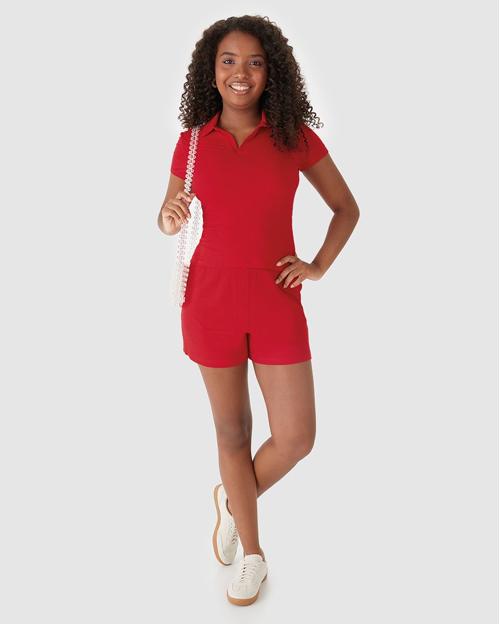 Conjunto Menina Blusa Polo Peitilho Frontal Malha Viscose Canelada Malwee Kids Vermelho - 12