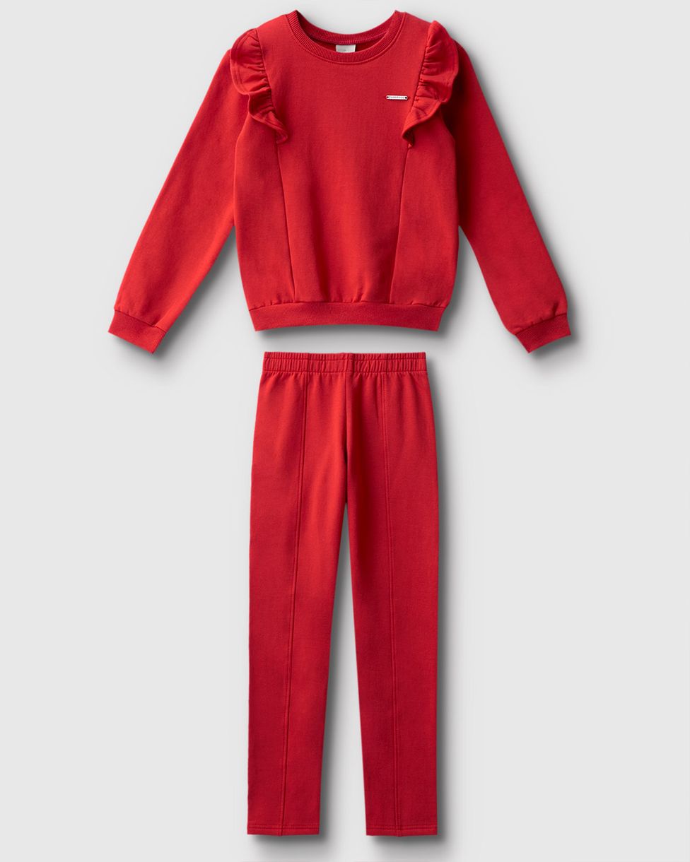 O Conjunto Carinhoso é a escolha ideal para aquecer sua menina com muito estilo. Feito em moletom stretch flanelado, proporciona um toque super macio e quentinho, além de flexibilidade total. O blusão tem detalhes de babado no ombro que dão um charme especial, e a calça garante o conforto ideal. Conforto e fofura em um só look!
