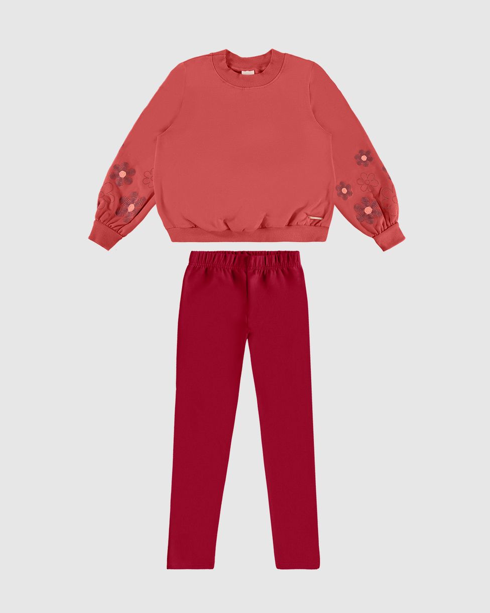 Conjunto Menina Blusão Estampa Na Manga Em Moletom Flanelado - Carinhoso