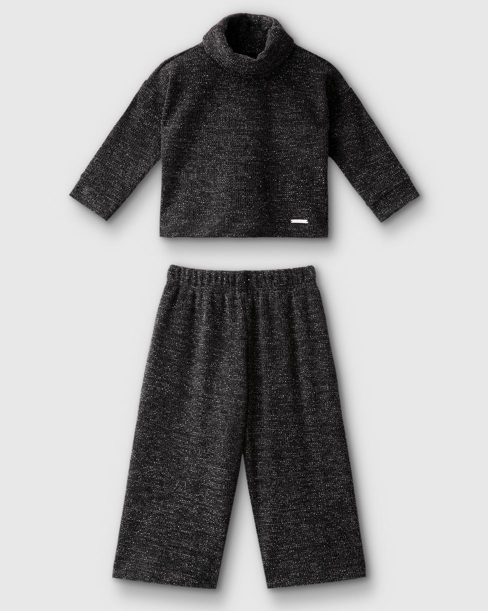InfantilConjuntosConjuntos LongosConjunto Menina Blusão Gola Alta E Calça Wide Leg Tricô Lurex - Carinhoso