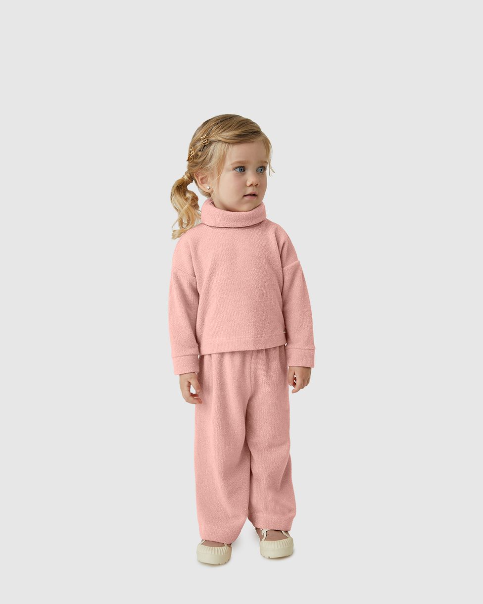 O Conjunto Menina Blusão Gola Alta E Calça Wide Leg Tricô Lurex - Carinhoso une elegância e conforto em um design sofisticado, perfeito para dias fresquinhos ou ocasiões especiais. Com tecido macio e detalhes brilhantes, proporciona estilo único e liberdade para a sua garota brilhar.
