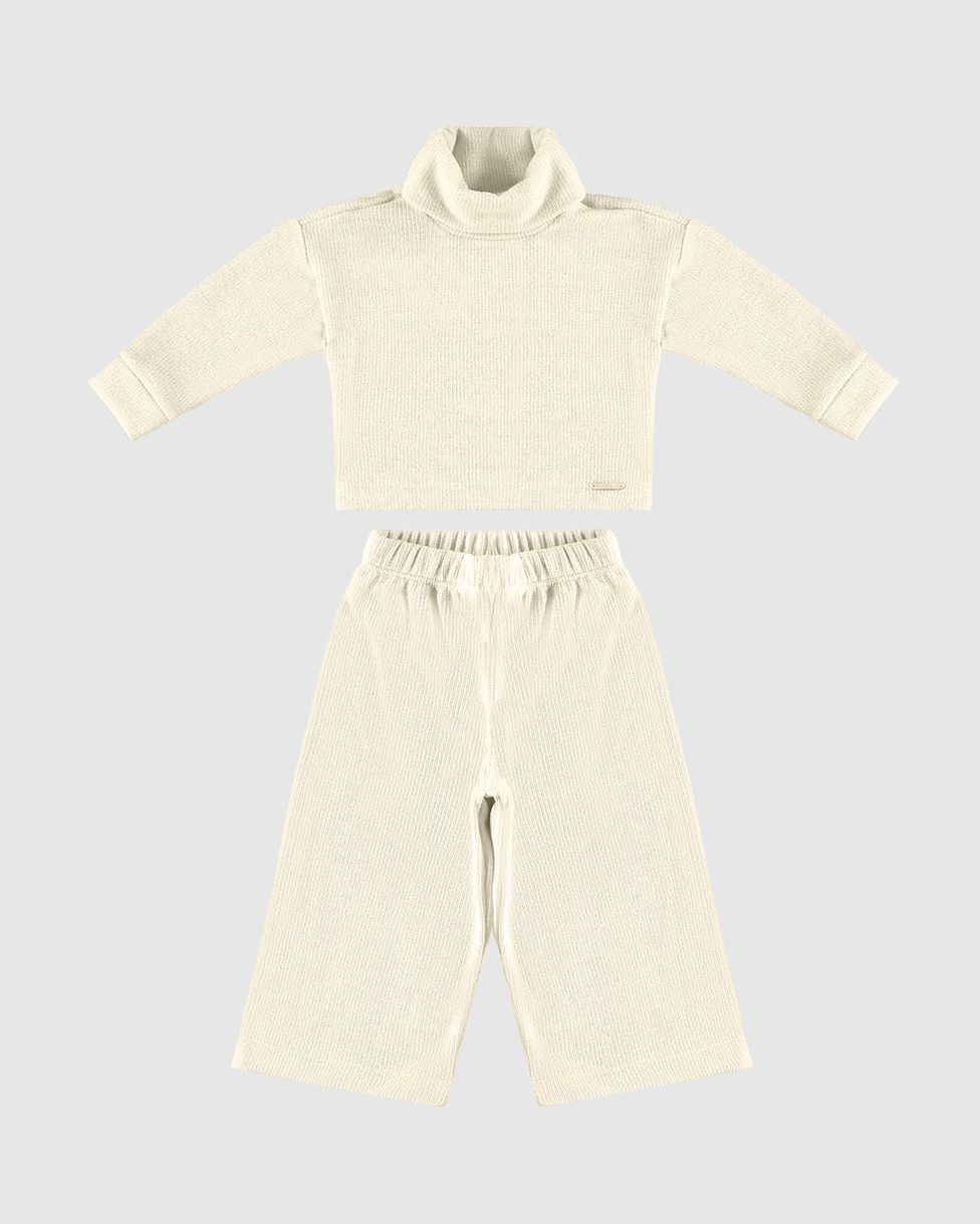 Conjunto Menina Blusão Gola Alta E Calça Wide Leg Tricô Lurex - Carinhoso