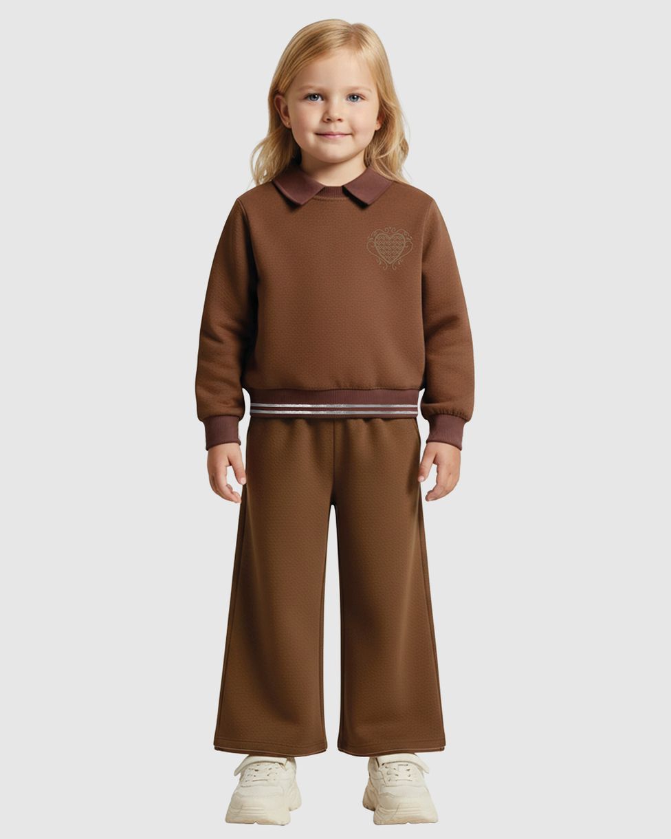 O Conjunto Blusão + Calça da Carinhoso é a tradução de modernidade e conforto para o Outono Inverno. Composto por um blusão com gola polo e uma calça wide leg, este conjunto em malha texturizada oferece um visual sofisticado e urbano, perfeito para meninas que amam estar na moda com liberdade.