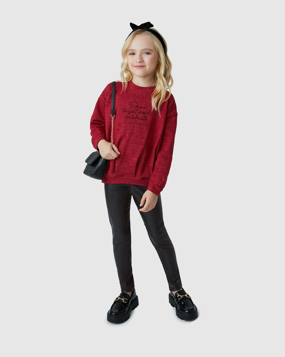 O Conjunto Menina Blusão Moletinho Lurex e Legging em Corino - Carinhoso é perfeito para um look moderno e cheio de atitude. Ideal para momentos especiais ou passeios descontraídos, une conforto e detalhes sofisticados, garantindo um visual descolado e estiloso para as crianças.